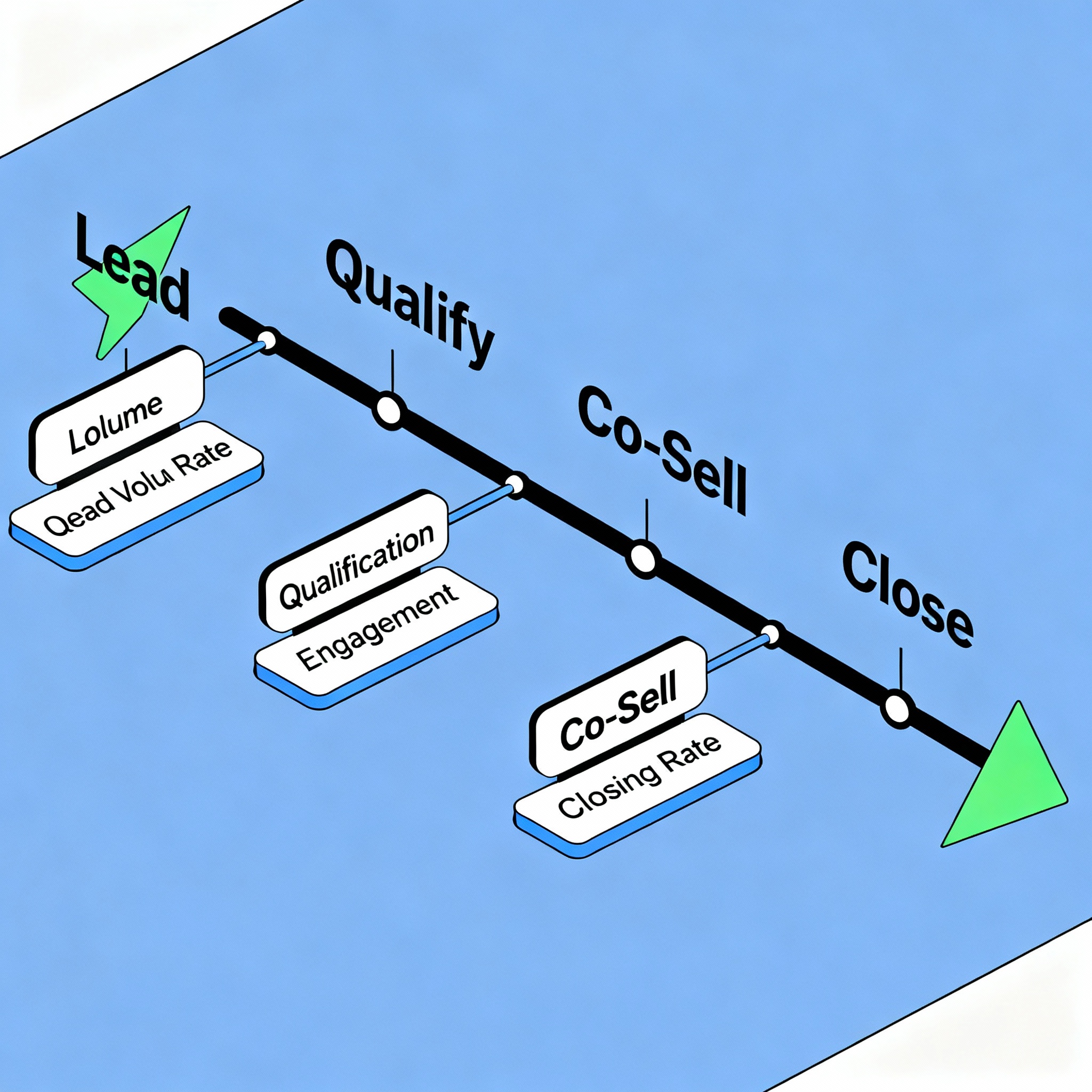 Qualify -> Co-Sell -> Close” with KPI boxes attached to each st…”>
